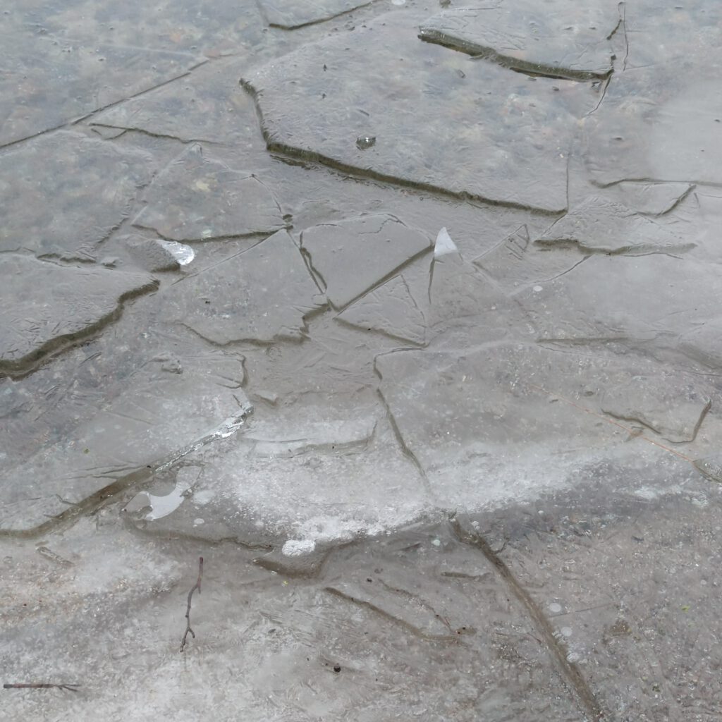 Obwohl es seit zwei Tagen taut, gibt es immer noch Eis am See. Es bricht auf, bewegt sich, verändert sich. Ist ständig in Bewegung.